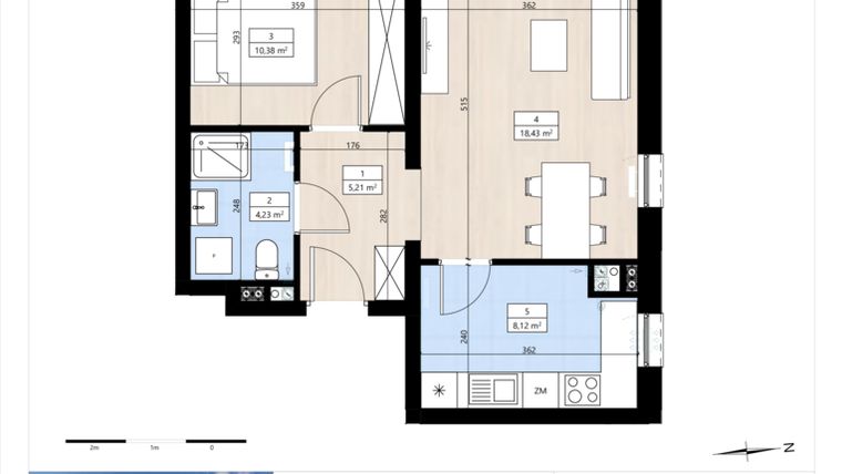 Nowy apartament o oznaczeniu B4/1/23 znajduje się na 1 piętrze i jest 1-poziomowy. Pomieszczenia mają 258 centymetrów wysokości. W apartamencie znajdują się 2 pokoje.