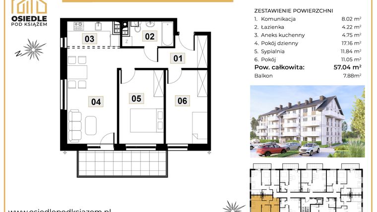 Mieszkanie na sprzedaż 3 pokoje o powierzchni 57,04 m² - numer M12427 800 zł7 500 zł/m2Estymowana rata kredytu: 2 164 zł