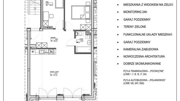 Mieszkanie znajduje się w inwestycji Kamieńskiego 232, w której znajdują się w sprzedaży jeszcze 3 podobne nowe mieszkania.