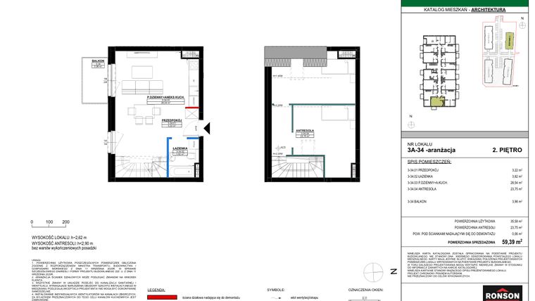 Nowe mieszkanie o oznaczeniu 3A_34 znajduje się na 2 piętrze i jest 2-poziomowe. Pomieszczenia mają od 260 do 280 centymetrów wysokości. W mieszkaniu znajdują się 3 pokoje.